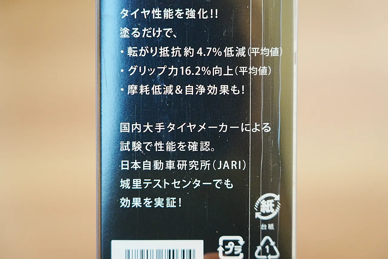 タイヤに塗るだけで、転がり抵抗が平均4.7%削減する。