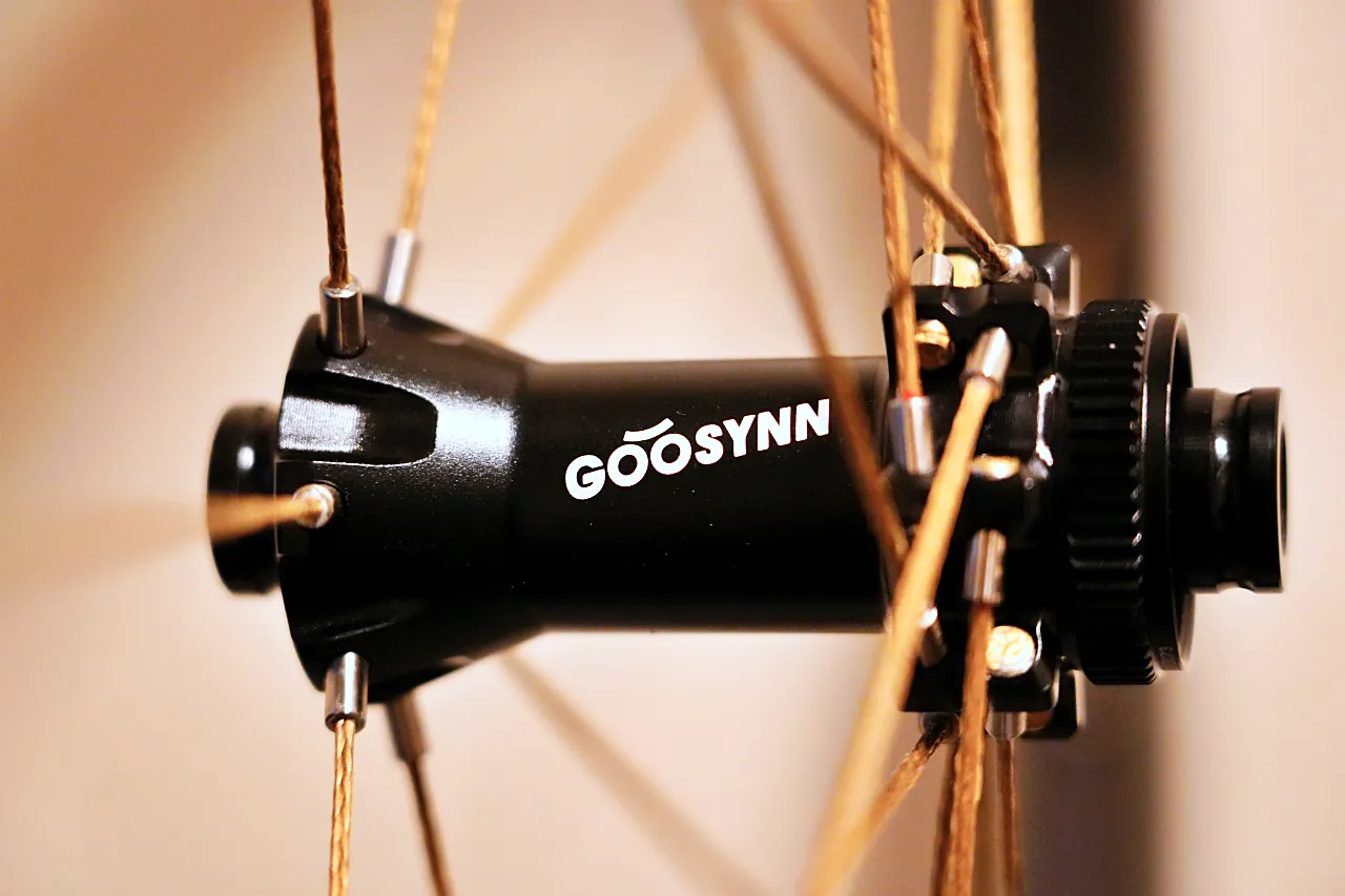 Goosynnは、特許取得済みと主張する「機械的インターフェイス」を採用し、スポークの両端に「チタン製固定具」を備えている。リム側において、この固定具はチタン製ニップルとして機能する。