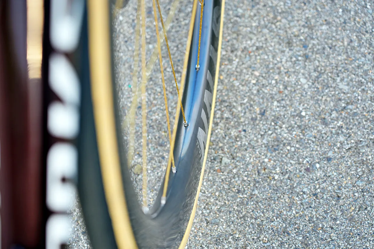 本ホイールセットの存在意義そのものである。Ti-Fiスポークは、スチール比で15%、カーボン比で29%もの振動を減衰させるというデータ が示すとおり、その性能は圧倒的である。