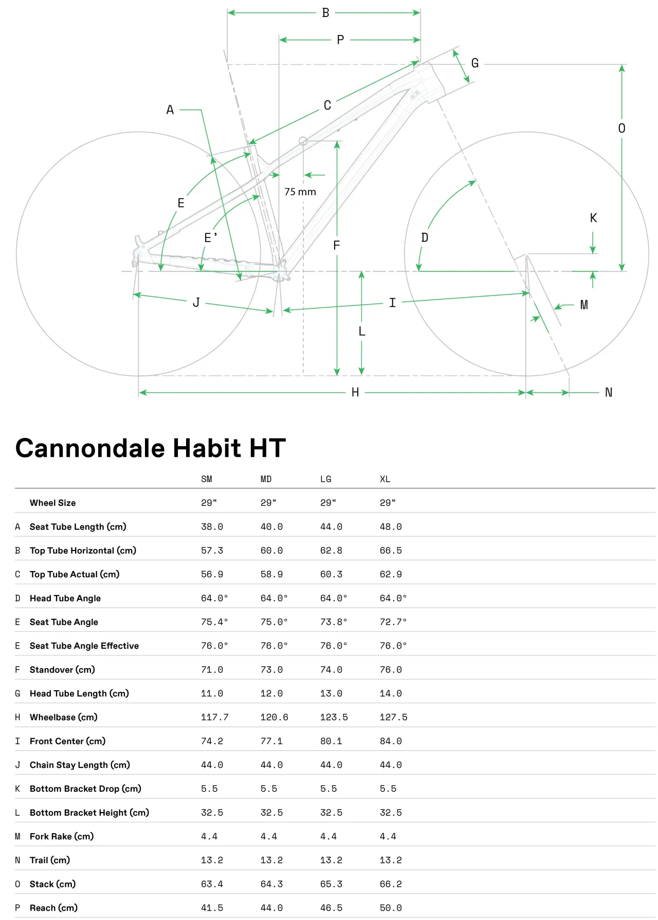 表1:Cannondale Habit HT 2 ジオメトリ一覧