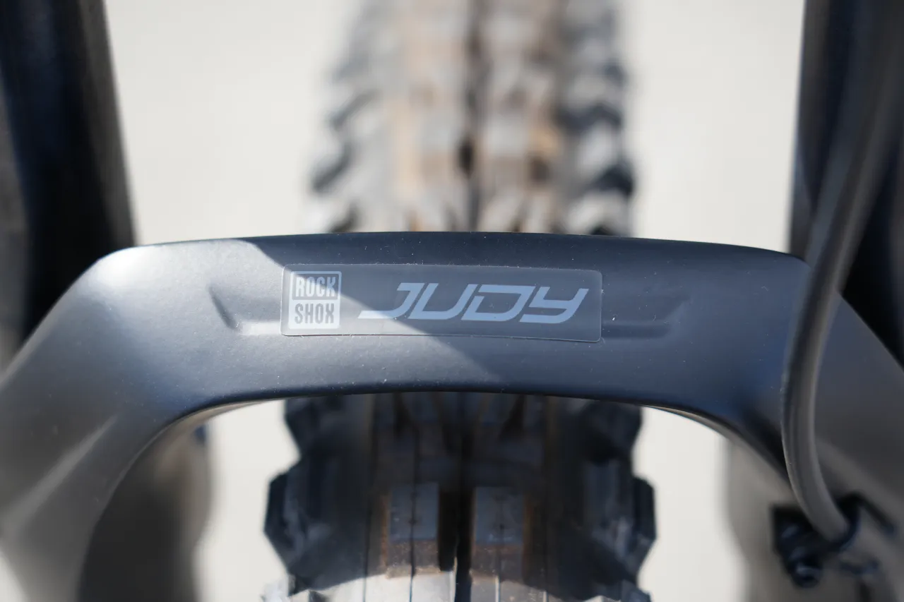 サスペンションはRockShox Judy TKは、エアスプリングによる体重に合わせた調整が可能な、信頼性の高いエントリーレベルのフォークだ。Solo Airスプリング、トラベル量130 mm、TurnKeyダンパーを搭載している。