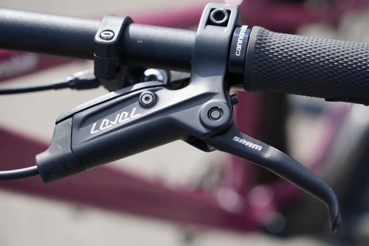 SRAM Level油圧式ディスクブレーキを搭載している。前後180mmのCenterLineローターだ。SRAM Levelは、主にクロスカントリー用途を想定した2ピストン式のブレーキである。