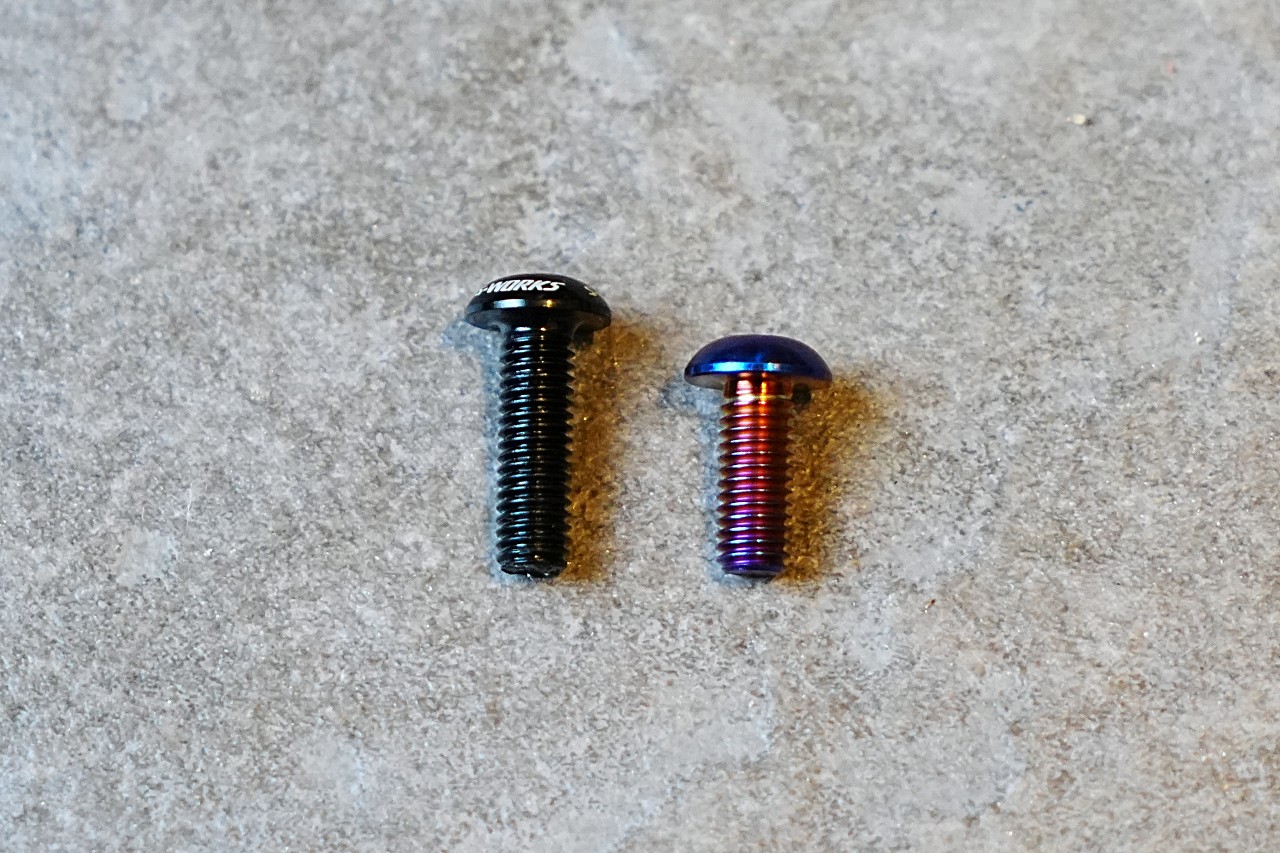 純正のボルトは長めに設計されています。あと、アルミで出来ているのか、S-WORKSのボルトはレンチを入れた際に舐めやすくなっています。