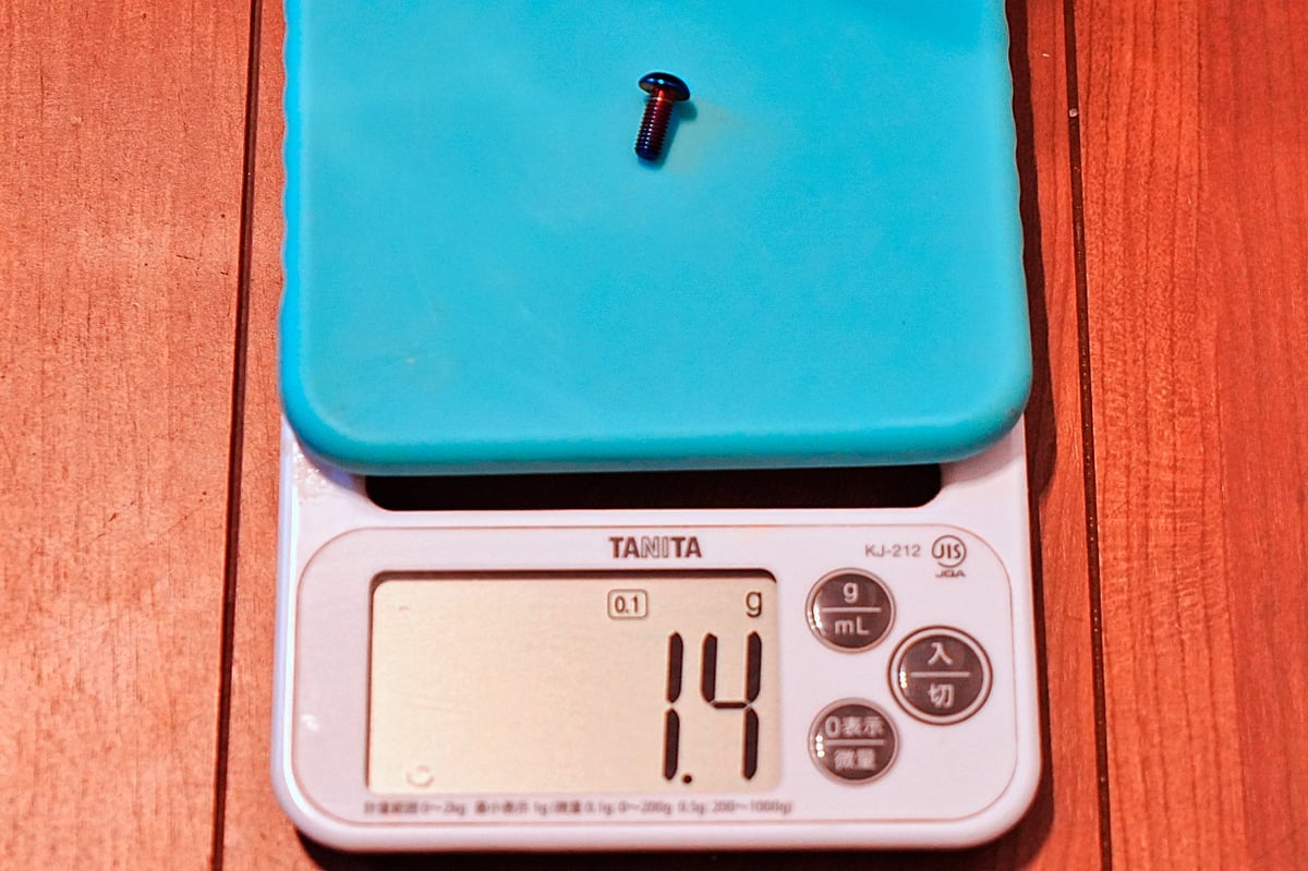 βチタ◯ウム製のボルトは2,189円とちょっと高めでしたので、個人的に作ってもらいました第二弾です。中間マージンとかは発生しないですし、価格は1,284円で良いです。