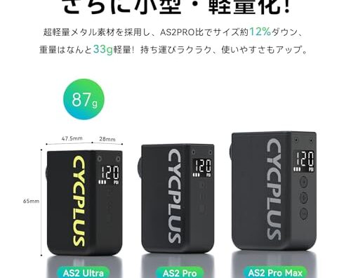 CYCPLUS 空気入れ 自転車 AS2 Ultra 120PSI電動空気入れ気圧表示自転車エアポンプ 携帯電動ポンプ 自動停止、エアーホース付き、マウンテンバイク、ロードバイク用
