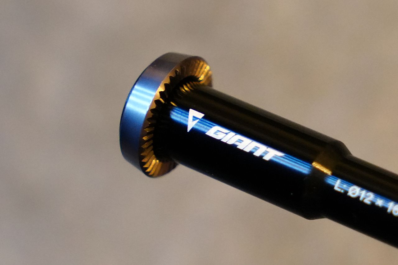 この「Lightweight Road Thru Axle」は、GIANT専用に設計された純正アップグレードパーツであるため、スペーサー調整などの煩わしい作業なしに、ツライチの完璧なフィット感を得ることができる。これはわずかながらも空力性能の向上のみならず、落車時の破損リスク低減にも寄与する。