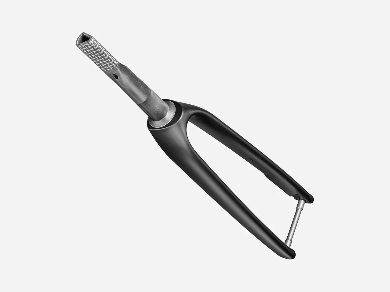 例えば、フロント周りの空気抵抗を減らすためにフォークから余分な素材を徹底的に削ぎ落とし、ヘッドチューブとクラウン部をシステム全体で最適化することで、システム全体の空力を損なうことなく軽量化を実現している。