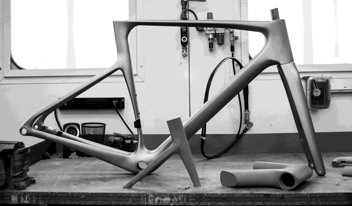 実際にフレームを手に取ってみると、ダウンチューブの複雑な曲面が、単なるデザインではなく、ボトル装着時を見据えた「整流板」として機能していることが手に取るようにわかる。