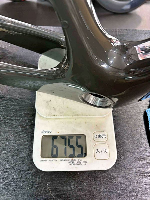サイズが小さいということもあるが、塗装後、取り外せないFD台座がついてこの重量は軽い。ライバルであるS-WORKS Tarmac SL8の49サイズの実測重量と比較してみた。