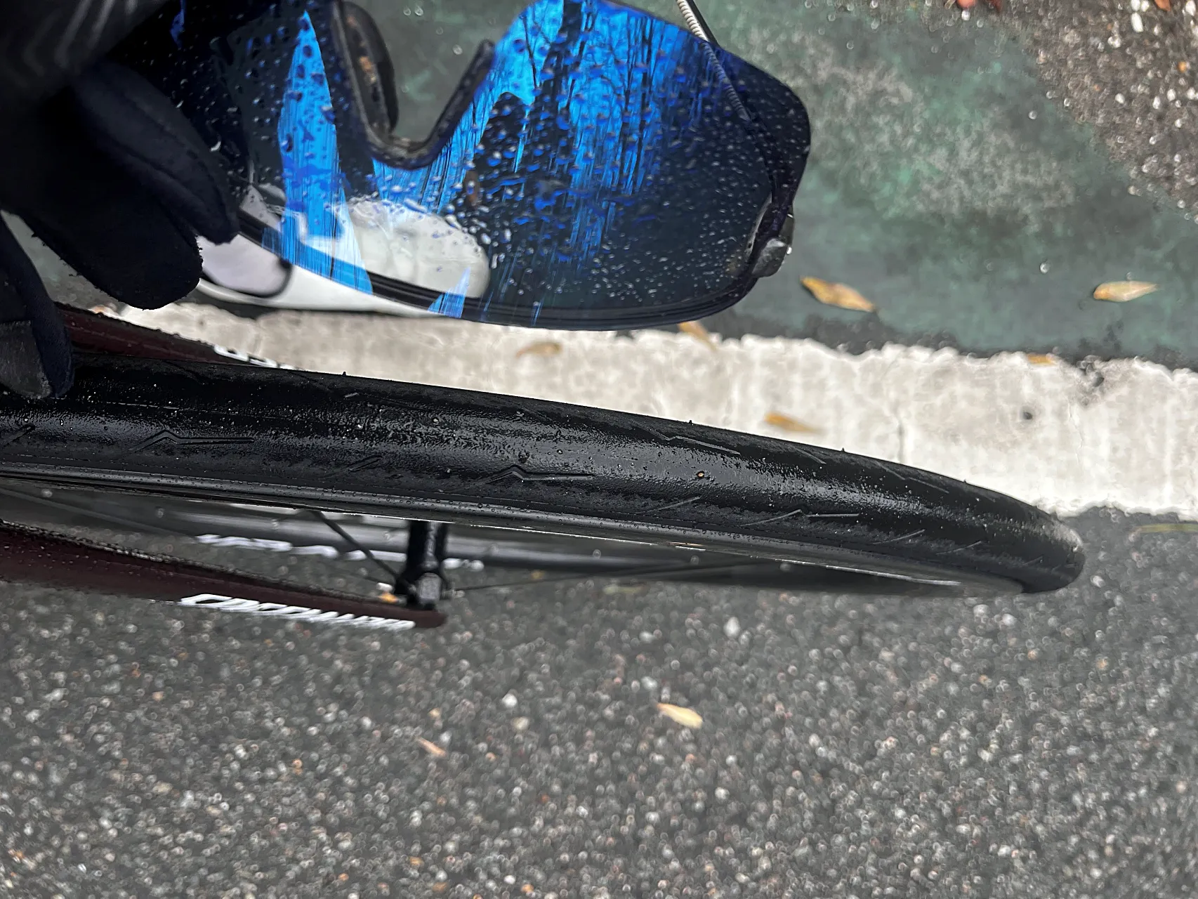 「すべりそう、すべりそう」と心の中で呪文のように唱えてしまうと、本当に滑ってしまう。そして、コーナーも下りも攻めきれない。しかし、このタイヤならばドライと同様の性能があると理解できているため、アグレッシブなラインを取れるはずだ。