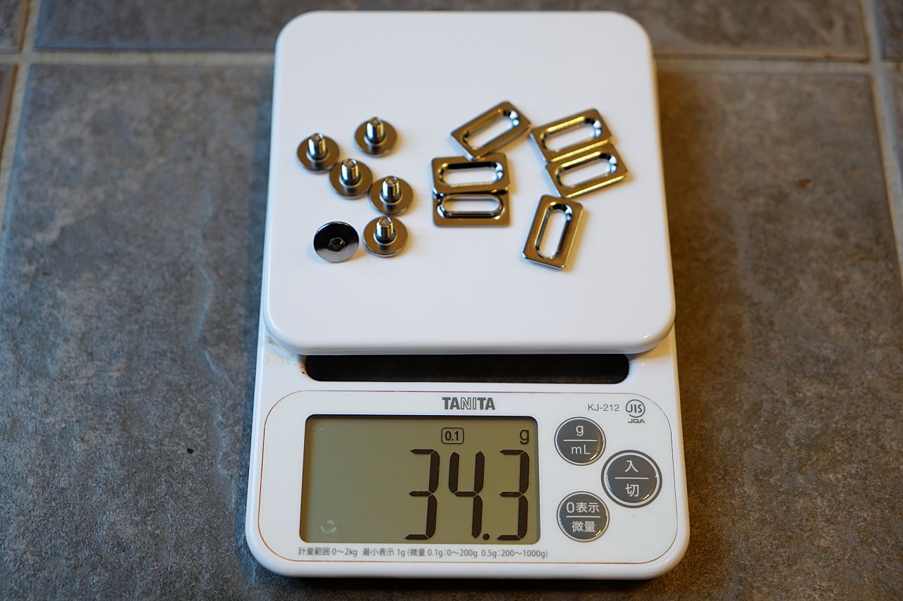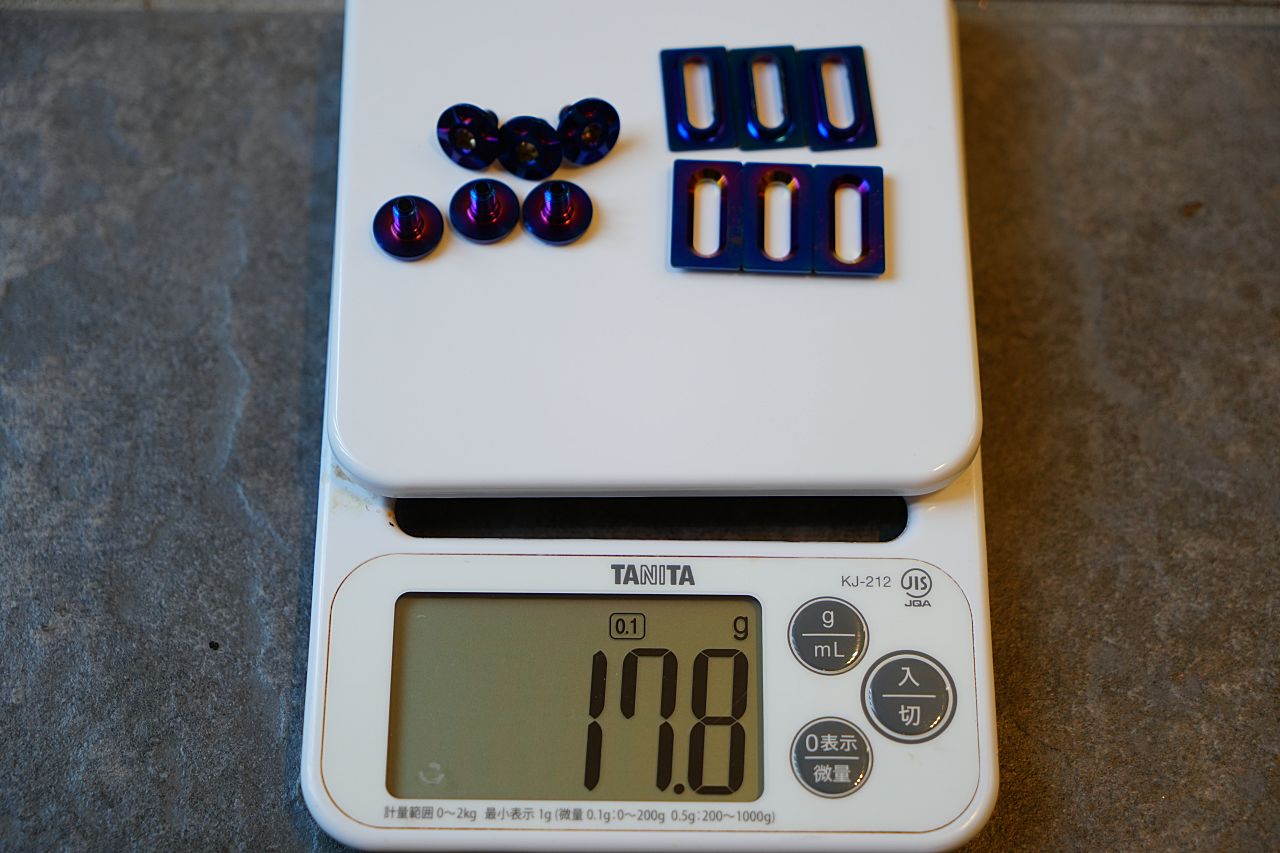 純正ボルトとプレートは 34.3g、チタンボルト&プレートは 17.8 gです。