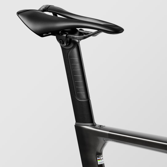 45km/h走行時の空気抵抗はわずか205W。これはCanyonの純エアロロード「Aeroad CFR」の204Wとたった1Wしか変わらない。それでいて最大35mmのタイヤクリアランスを確保し、VCLS Aeroシートポストによる振動吸収機構まで搭載している。