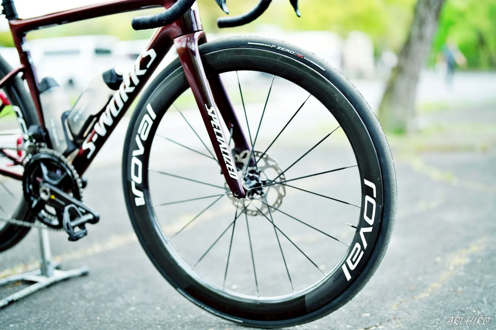 ホイールは内幅21mmのROVAL RAPIDE CLX IIIに取り付けた。ピレリは公式に22~25mmの内幅リムに最適化されていると謳っているが、21mmの実装でも問題は生じなかった。
