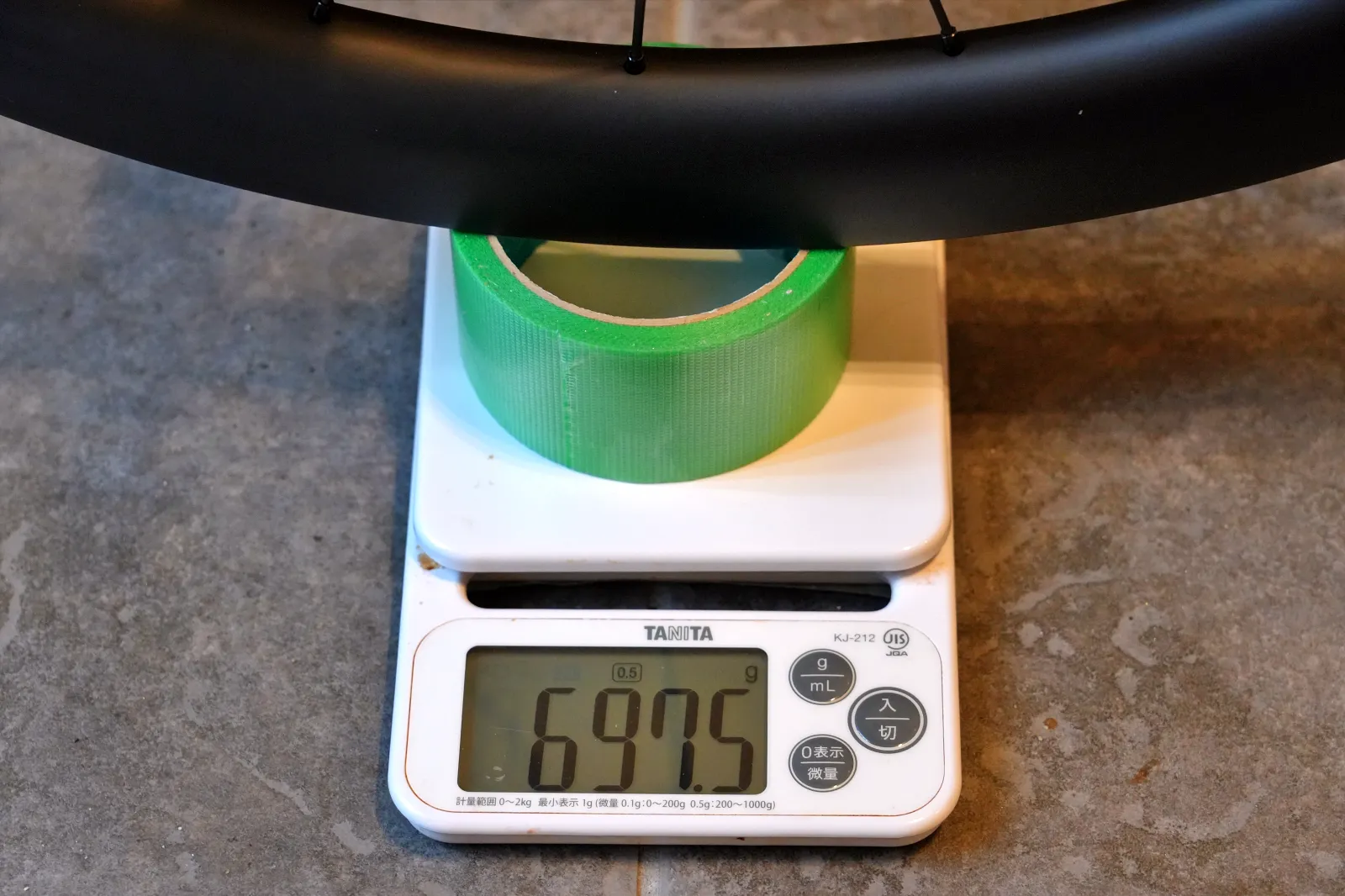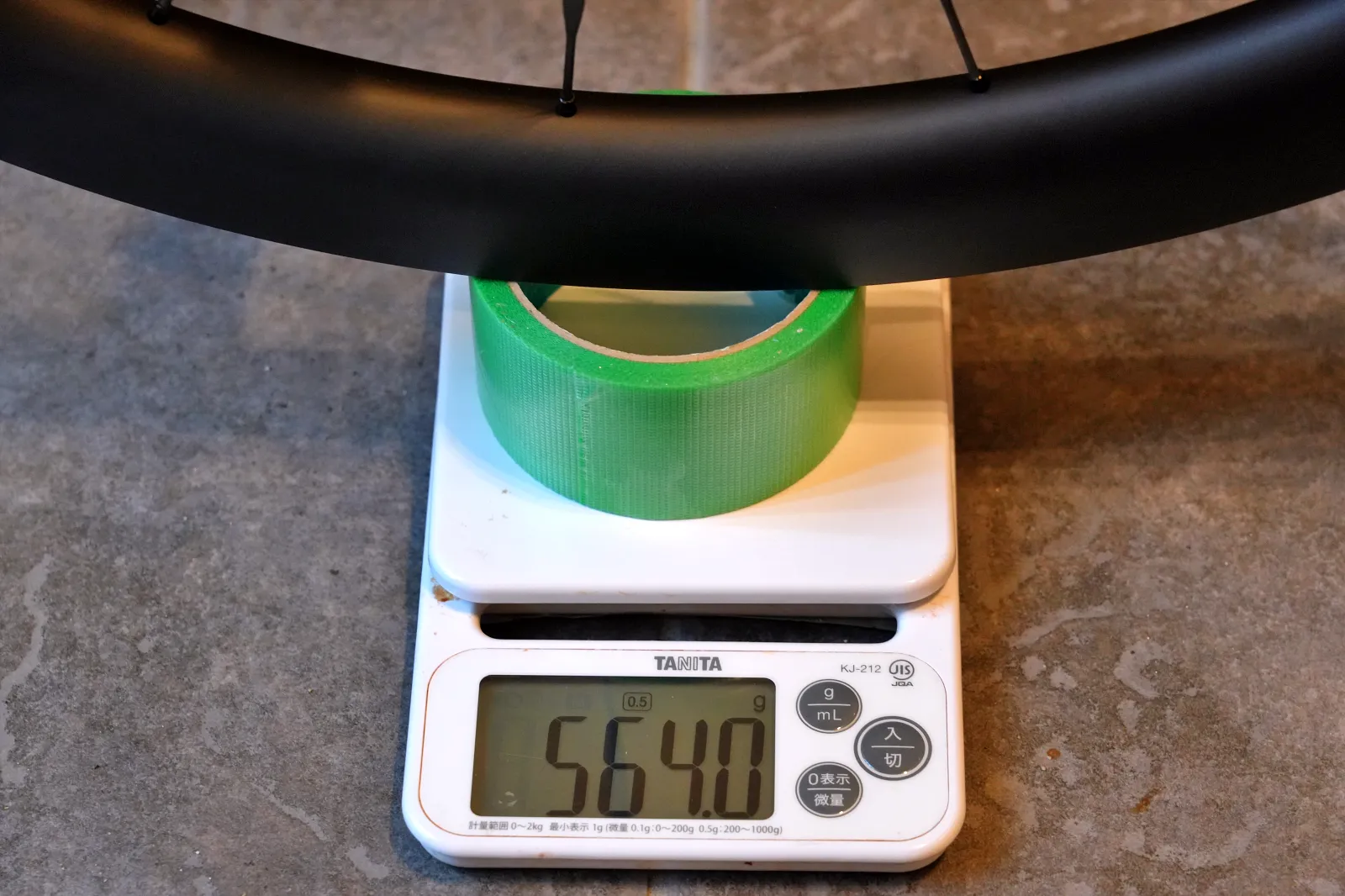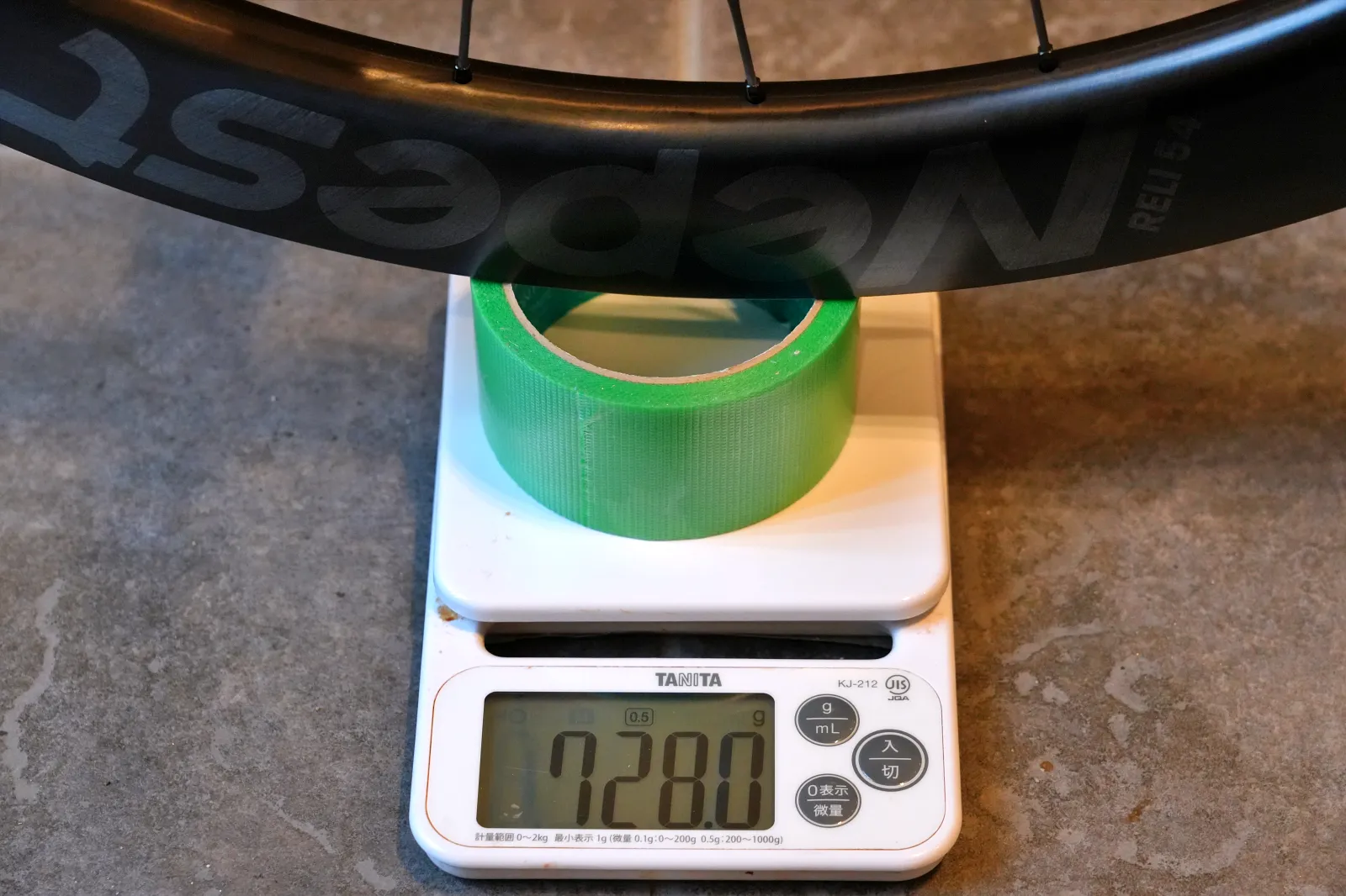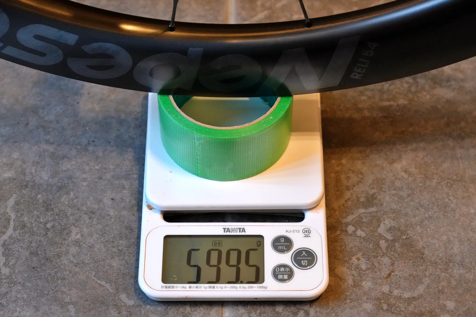 RELI 54はフロント599g、リア728gで合計1,327g(カタログ値 +2g、リムテープなし)