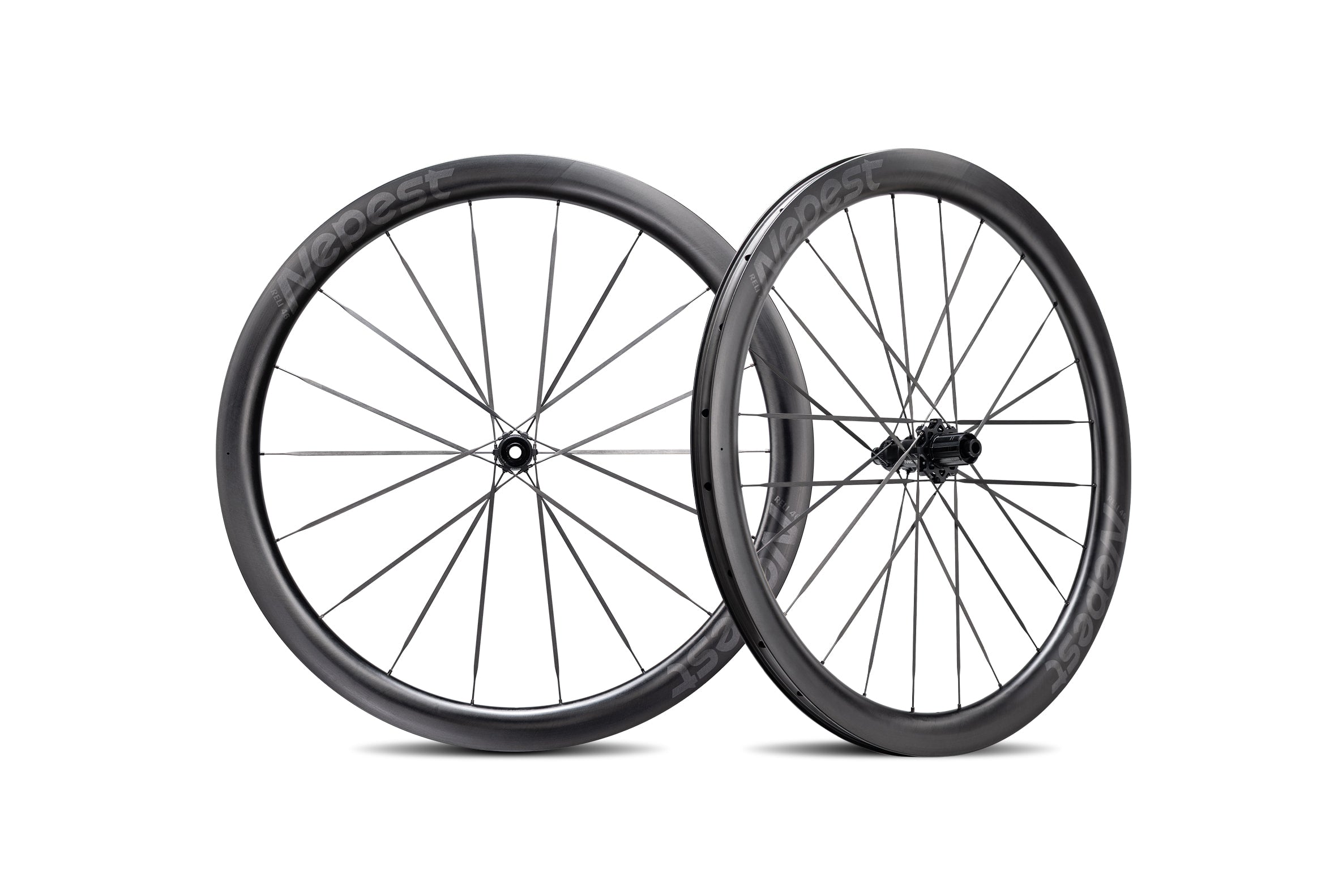 NEPEST RELI 46は、46mmという中庸なリムハイト、F18/R24という合理的な非対称配分、1,245g±30gという削りすぎない軽量、リム単体400g±15gという外周質量の最適化。